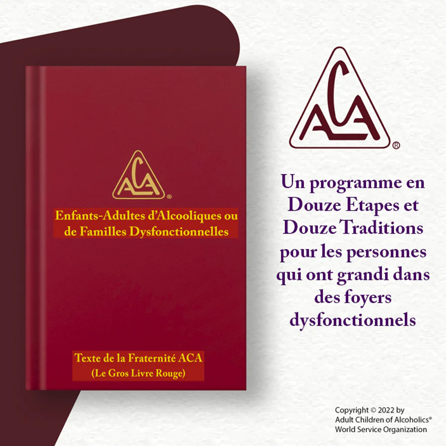 Le Texte de l'Association ACA, édition à couverture rigide, a été écrit par des membres anonymes de l'ACA pour fournir des conseils sur le travail du programme en 12 étapes de l'ACA menant à la guérison des effets de l'enfance dans une famille alcoolique ou autrement dysfonctionnelle. Ce livre est maintenant souvent appelé le "Big Red Book", ou "BRB".